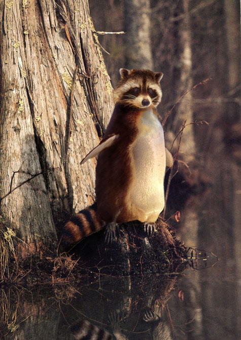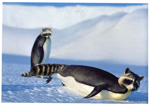 Welcome to Pencoon Watch, the only pencoon sitings site on the planet. Here you will find answers to all your pencoon inquiries and perhaps learn more than you wanted to know. "What exactly is a pencoon?" you might be wondering. Glad you asked! Penginous Raconious is a rare animal found only in remote locations across the American Midwest. As its name suggests, it is a complex mixture of both penguin and racoon species. "How could this happen?" would be the next obvious question. To be honest, we don't exactly know. Legend has it that a careless zookeeper was travelling through the wooded hills of Northern Indiana one spring many years ago. Somehow his vehicle was overturned and the precious cargo, a flock of penguins, was loosed on the unsuspecting countryside. Defying the laws of nature, the local racoons bred with the flightless water fowl and thus a new creature came into the world. |