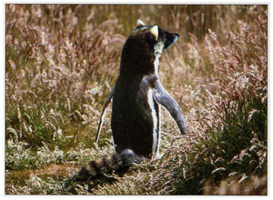 Attempts to breed pencoons in captivity have yielded no results. Question still remains as to whether baby pencoons are born alive or are hatched from eggs. We do know that pencoons are unable to continue breeding amongst themselves, the same as mules Grown pencoons range in size from six inches up to three feet in height, depending on the species of penquin from which they were born. They are excellent tree climbers and swimmers and have been known to burrow extensive tunnels in the ground that often offer passage to bodies of water. |